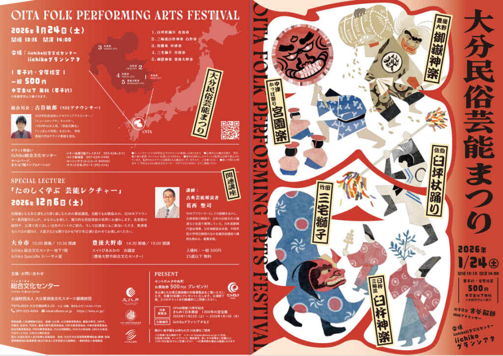 詳しい情報はこちらにご確認ください。大分民俗芸能まつり(1/24) – iichiko総合文化センター